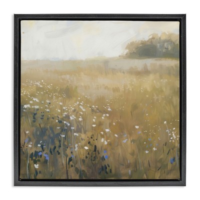 Stupell Industries Warm Wildflower Landscape Floating Frame Canvas Art, Black, 18" x 18"