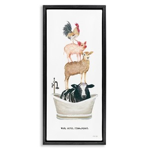 Stupell Industries Wash Scrub Rinse Animals Floating Frame Canvas Art