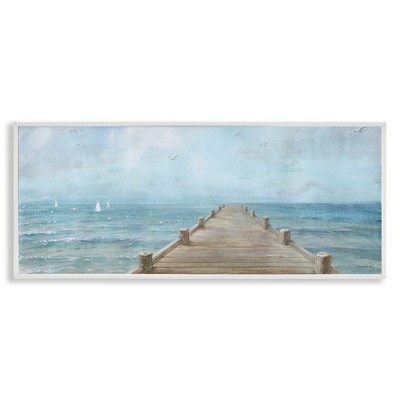 Stupell Industries Waterfront Pier Coastal Ocean View Framed Giclee Art, Black, 24" x 10"