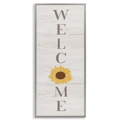 Stupell Industries Vertical Welcome Sign Rustic Sunflower Grain Pattern Framed Giclee Art, White, 10" x 24"
