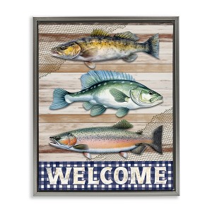 Stupell Industries Welcome with Rustic Fish Floating Frame Canvas Art