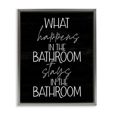 Stupell Industries What Happens In The Bathroom Floating Frame Canvas Art, Black, 17" x 21"