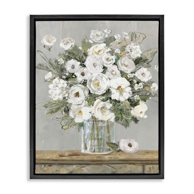 Stupell Industries White Ranunculus Blossoms Flower Vase Floating Frame Canvas Art