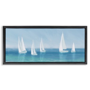 Stupell Industries White Sail Boats Across Coast Floating Frame Canvas Art, Black, 31" x 14"