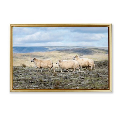 Stupell Industries Wildflower & Backyard Laundry Floating Frame Canvas Art, Gold, 31" x 21"