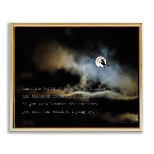 Stupell Industries Witch Flying By Moon Floating Frame Canvas Art, Gold, 21" x 17"