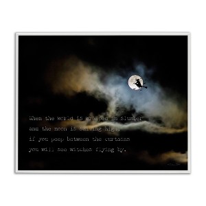 Stupell Industries Witch Flying By Moon Framed Giclee Art, White, 30" x 24"