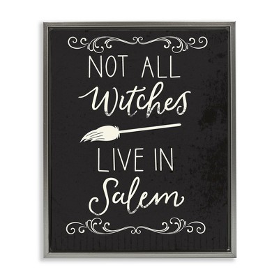 Stupell Industries Witch Parking Humorous Halloween Toad Grain Pattern Floating Frame Canvas Art, Gray, 25" x 31"