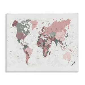 Stupell Industries World Map Patterned Waters Monochromatic Pink Regions, 48" x 36"