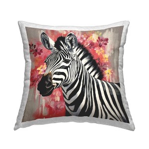 Stupell Industries Zebra with Modern Flowers Outdoor Decorative Throw Pillow, 18 x 18