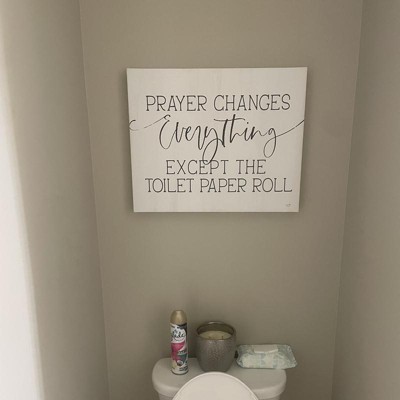 Stupell Industries Prayer Changes Everything Funny Religious Bathroom Quote Canvas Art, 30" x 24"