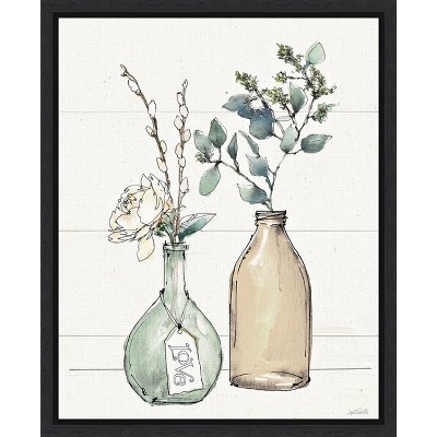 Stupell Industries White Tulips Rustic Country Jar Falling Blooms Floating Frame Canvas Art, Gray, 17" x 21"
