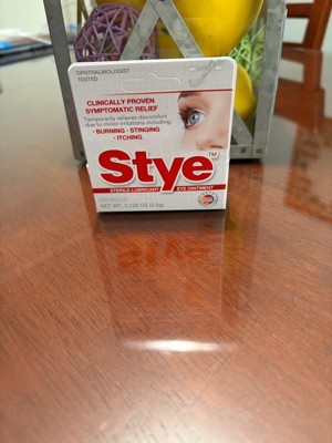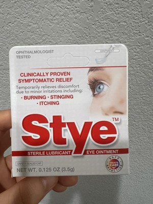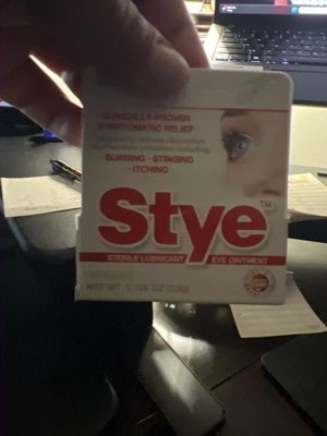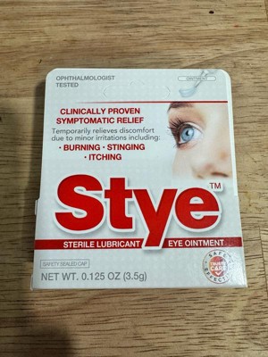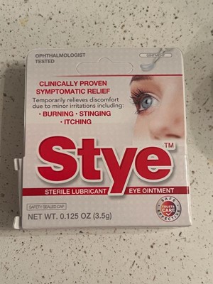 - Stye Sterile Lubricant Eye Ointment temporarily relieves discomfort from stye eye discomfort, including burning, stinging, and itching