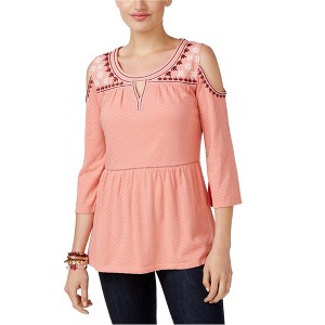 Style & Co. Womens Embroidered Cold Shoulder Blouse - 1 of 1