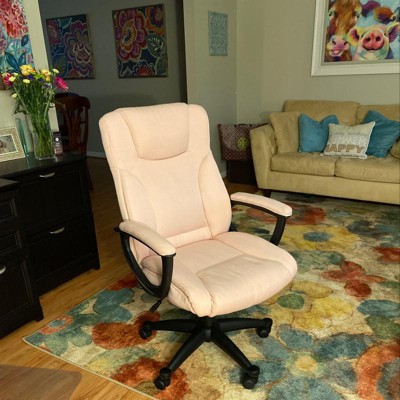 Add a touch of modern style to your workplace with this comfortable office chair from Serta. This plush desk chair is upholstered in microfiber fabric and features layered body pillows that keep you cradled in comfort while working or gaming. It has a contoured lumbar design to provide your lower back with exceptional support. This ergonomic office chair also offers a pneumatic seat-height lift, a recline mechanism, and adjustable tilt tension. This Serta office chair is built to last with a heavy-duty five-star base and durable multi-surface casters.