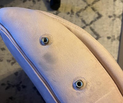 I absolutely love the pink color on this chair, it’s so pretty in person. The fabric is super soft. Shipped really quickly. It feels really comfortable so far. And I have to sit in it for almost 8 hours for work. It was kind of a pain to put together though. The bottom part of the chair was easy to put together but the back part of the chair, was really hard to screw on, one of the screws doesn’t even go in all the way. But I don’t feel like taking apart the whole thing and go through the hassle of returning it. Overall, I love it and it is super heavy duty and good quality, other than the issue with the screw.