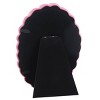 This is a cute picture frame and I like the oval shape. I also really like the bright pink color and the texture around the frame. This fits a 4x6 picture but you have to play around with the dimensions since it's an oval frame. There are clasps on the back to keep it closed. It's supposed to be a stand-up frame, but the part on the back that makes it stand up doesn't go all the way out. I've tried stretching it to make it work but it's hard to get it to stand up. The part on the back is attached with a ribbon, so I ended up cutting the ribbon off in order to stretch out the backing to make it work. So while it's able to stand up now, I do feel like the frame seems a little cheap. I'm not sure how durable this is or how long it will stand up.