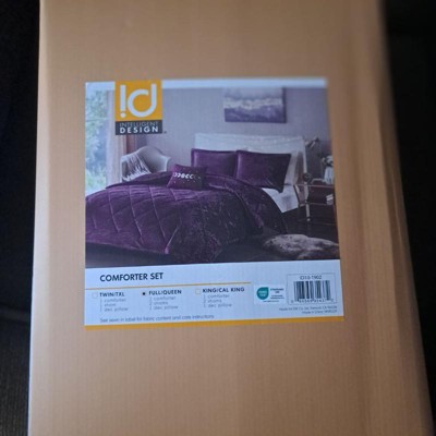 Create a luxuriously comfortable and lush bedroom space with the Intelligent Design Felicia Velvet Comforter Set. The crushed velvet, black comforter features a quilted diamond top that adds dimension to the glamorous look. Matching shams (1 for Twin/Twin XL Sizes) coordinate with the velvet comforter, while an oblong decorative pillow provides the perfect finishing touch. Hypoallergenic polyester filling in the comforter and decorative pillow provide exceptional warmth and comfort. Machine washable for easy care, this velvet comforter set brings incredible softness and comfort with a glamorous flair to your bedroom decor. Items in the set may come in a rolled or compressed packaging, which will need to be fluffed up or steam ironed before use to remove wrinkles.