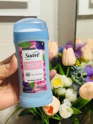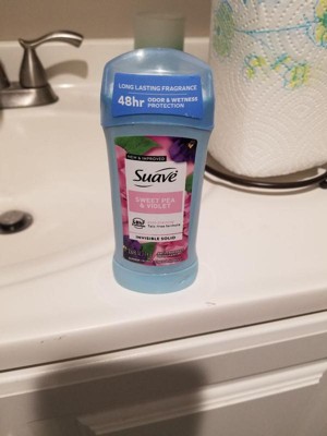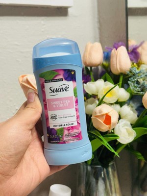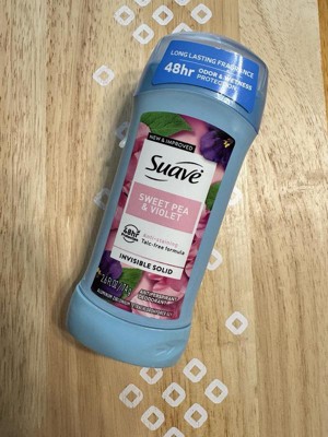 [This review was collected as part of a promotion.] Suave's Sweet Pea and Violet Invisible Solid Antiperspirant Deodorant Stick offers reliable sweat protection in an easy-to-use stick format. 1 It features a light and pleasant sweet pea and violet scent that is not overpowering. 2 The standard stick packaging is functional and convenient. This deodorant is generally effective at controlling odor and providing all-day dryness for most users, with a smooth, dry texture upon application.