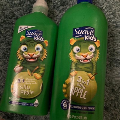 - Suave Kids Silly Apple 3-in-1 shampoo, conditioner and body wash packs a triple punch of fruity clean in one deliciously simple step