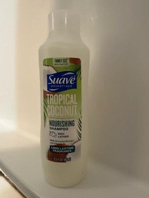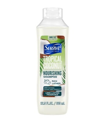 Discover the natural beauty of your hair with Suave Essentials Tropical Coconut Shampoo—from the #1 most trusted shampoo and conditioner brand in the U.S.* This gentle, nourishing formula cleanses and strengthens without weighing hair down or leaving it greasy. Designed for all hair types—straight, wavy, curly, or coily—it leaves hair soft, smooth, and easy to manage. The tropical fragrance blend of coconut, pineapple, and vanilla provides a fresh, long-lasting scent that lingers well beyond the shower. Perfect for everyday use, this family-size shampoo bottle delivers salon-quality results at an affordable price. For the ultimate tropical shower experience, pair with Suave Essentials Tropical Coconut Nourishing Conditioner. Like all Suave products, our shampoos and conditioners are cruelty-free and never tested on animals. For over 75 years, Suave has been committed to making professional-quality hair care and skincare accessible to everyone—empowering people to look, smell, and feel their best every day. *Voted #1 most trusted Shampoo and Conditioner (Women) brand by American shoppers based on the 2025 BrandSpark® American Trust Study.