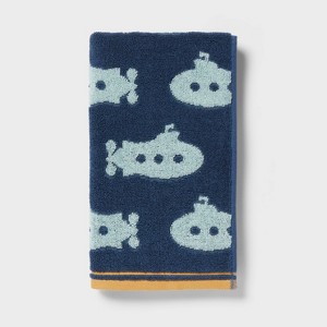 Elevate their bath space with this Bath Towel from Pillowfort™. Made from 100% terry cotton for a soft feel and absorbency, this decorative hand towel comes in handy for drying off quickly after a shower. Featuring a knit construction with fun designs and a contrasting trim, it's sure to add fun flair to their bathroom decor.