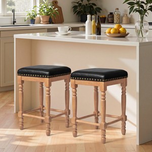 Elevate your space with these handcrafted leather-look bar stools, where timeless design meets everyday practicality. Each stool boasts waterproof, wipe-clean fabric upholstery with artisanal distressing that gives it a one-of-a-kind character. Built with solid wood frames for unwavering durability, these stools transition effortlessly from kitchen counters to garden bars or balcony nooks, offering reliable support in any setting. The 26" seat height is precision-engineered to pair perfectly with 35"-39" countertops, ensuring ergonomic comfort whether you're dining, working, or simply relaxing. A sleek backless design allows the stools to slide neatly under surfaces when not in use, maximizing space in compact areas while maintaining a clean, uncluttered aesthetic. Assembly is a breeze—just 15 minutes with pre-drilled holes and included tools, so you can enjoy your new stools without delay. Where heritage craftsmanship meets modern convenience, these stools are ready to become your go-to seating solution.