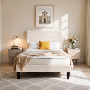 - 【Robot-Vacuum Friendly Storage】: The platform bed frame with elevated wood platform base offers clearance for storage bins and vacuum access. The fabric-wrapped headboard avoids hard edges, making it safer