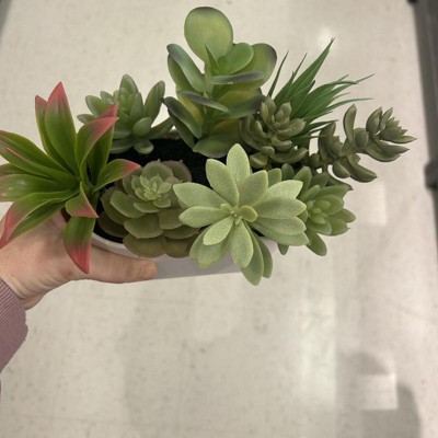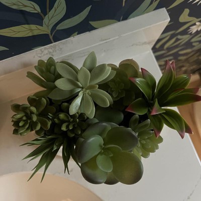[This review was collected as part of a promotion.] This is an awesome succulent floral greenery arrangement. This cute little faux plant comes in a nice white pot. This arrangement looks very realistic and is very well-made. This would be perfect to add some greenery to your living spaces. I chose to put it in our bathroom and it looks very realistic. This would also make a great gift for someone for a housewarming gift I received an incentive to write this review.