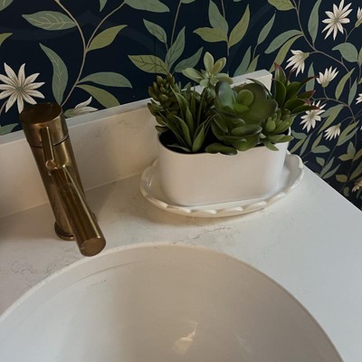 [This review was collected as part of a promotion.] Love this little faux succulent plant. Was so excited to purchase this for my bathroom as I can’t keep succulents alive and thought this would be a nice alternative. Looked super cute with the white pot and greenery on the plants. The perfect addition to my bathroom. Would definitely buy this again or even a larger one to display. Much easier to take care of than a live plant. I received an incentive to write this review.