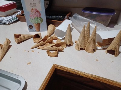 Good tasting cones, but had to throw over half of the box away because they were broken. This is the second box in a row like this. Will not be purchasing these again.
