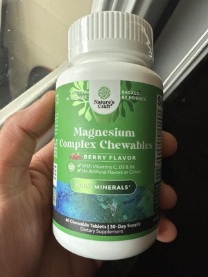 Sugar Free Magnesium Complex Chewables, Magnesium Gummies with Glycinate Taurate & Citrate Complex, Vitamins D3 B6 & C, Berry, Nature's Craft, 60ct