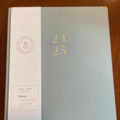 [This review was collected as part of a promotion.] I purchased this 2024 through 2025 planner by Sugar Paper Essentials. I love that this planner is a hard cover making it very durable. This is approximately 8 x 10 and a baby blue color. There’s several different types of calendars inside. You can view the entire month on two pages or you can view a week on one single page. There’s also plenty of places to take notes or jot down ideas. This planner also has gold rimmed corner protectors on it. I received an incentive to write this review.