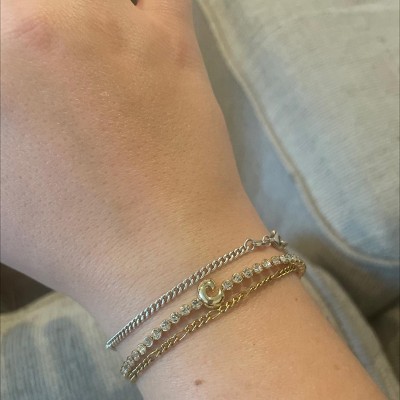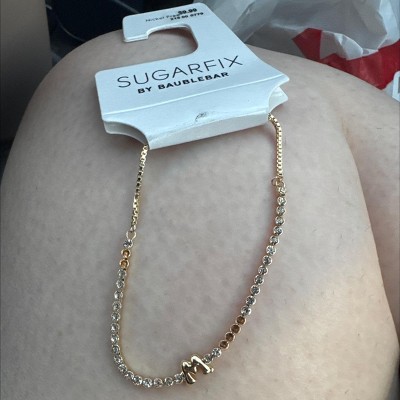 Make things personal with the SUGARFIX By BaubleBar Initial Sparkle Custom Bracelet. Beautifully detailed with sparkling stones and choice initial, this bracelet is classic and chic for everyday wearing. Pair it with other accessories or rock it solo — this bracelet is an easy signature statement piece for everyday wear.