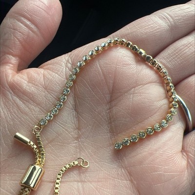 Super disappointed buy - despite BaubleBar's typically good quality. A rhinestone (right in the front!) fell out only 5 days into owning it. Didn't even wear it everyday. So upsetting. Feel like I wasted my money. I only learned the bracelet was adjustable after coming here to write the review. I tried adjusting it & it immediately broke. So it is completely unwearable now. Wish I could get a refund.
