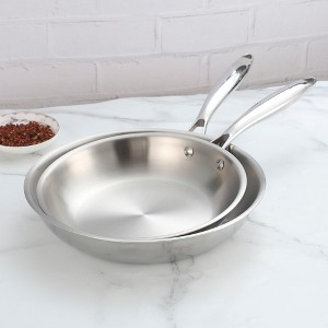 Upgrade your kitchen with this 2-piece stainless steel fry pan set, including 9.5-inch and 11-inch skillets. Engineered with a tri-ply base—304 stainless steel, aluminum core, and 430 stainless steel—these pans deliver fast, even heat distribution without warping. The ergonomic cool-touch handles ensure a secure, comfortable grip, while the riveted construction adds lasting durability. Perfect for searing, sautéing, or pan-frying, and compatible with all stovetops including induction.