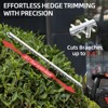 Powered by a long-lasting 4.0Ah lithium battery and equipped with a 90°/180° rotating handle, this lightweight trimmer (only 4.4 lbs) gives you full control at any angle. The dual safety switch prevents accidental starts, while the included blade cover offers extra protection during storage. Whether you're shaping hedges, trimming bushes, or edging lawn borders, this hedge trimmer is your go-to landscaping tool.