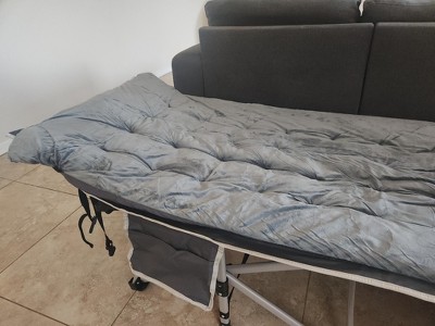 The cot itself is OK but the "mattress" is nothing more than a thin blanket. It looks thick and plush in the photo but in reality it is very thin and flat. It does not inflate nor does it expand once its out of its packaging. The mattress was the main reason I purchased this product. I feel it is very misleading. I am surprised that no other reviews mention this.