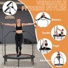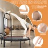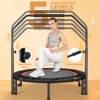 - This fitness trampoline features a 5-level adjustable foam handlebar ranging from 33.9" to 49.6", making it suitable for users of various heights.