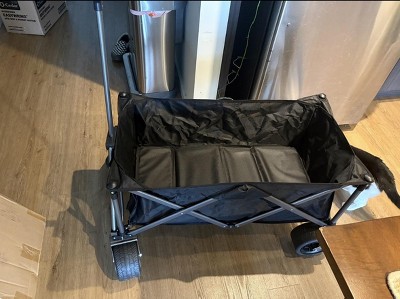 Very sturdy wagon with smooth all-terrain wheels. Perfect for camping, outdoor activities, and groceries. It holds a lot of weight and is easy to fold up and store. Highly recommend!