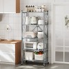 - 【Large Lockable Wheels】The utility shelf comes with 4 easy-glide durable rubber wheels with 360° rotation. 2 with and 2 without brakes make the rolling kitchen cart more stable don't worry about slipping. The mesh shelves on both sides can also prevent objects from falling.