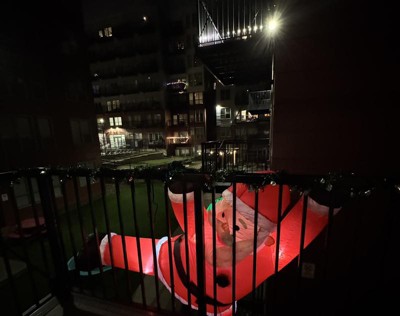 I love this inflatable! All I had to do was plug it in and it lit up and inflated quickly. It was easy to secure to my balcony!