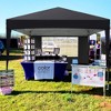 Used this at four events. Setup is easy, but the fabric is thin, leaks in the rain, and didn't come with the weight bags as advertised.
