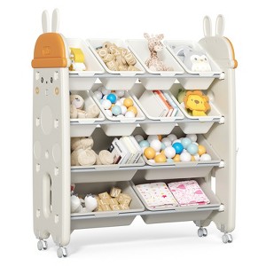 - Spacious & Organized: 4-tier storage rack includes 12 bins for sorting toys, books, and more.