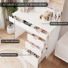 - 【Luxurious Full-Width Mirror】Complete with a frameless, full-width mirror, the vanity provides an expansive view for your beauty routine, enhancing both functionality and style in your personal space.