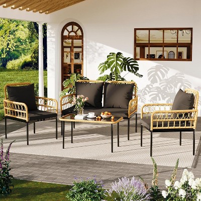 Introducing our exquisite 3-piece handwoven wicker patio conversation set – a perfect blend of fashion and durability, taking your outdoor experience to new heights all year round. This set includes a 3-person sofa and 2 ottomans, making it an ideal choice for sunrooms, gardens, balconies, and poolside areas. Crafted with premium PE wicker, it offers sun protection, waterproofing, rust resistance, and scratch resistance, all while boasting a unique and exotic appearance. The 4-inch thick waterproof seat cushions and plush backrest cushions provide a comfortable seating experience. Easy to assemble with low maintenance costs, this furniture set ensures you won't have to worry about cracks, splits, or aging. Enhance your outdoor space with our premium handwoven patio conversation set and create a cozy and inviting atmosphere.