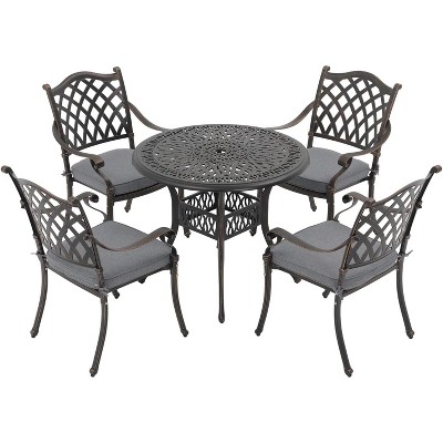 SUGOLD 3 Piece Patio Furniture Dining Set, Cast Aluminum Outdoor Dining Chairs and Table Set with Umbrella Hole, Stackable Chairs, Antique Bronze