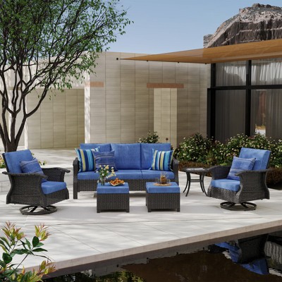 SUGOLD Hand Woven Wicker Patio Conversation Set with Blue Cushions