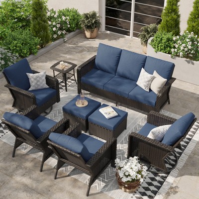 SUGOLD 6-Piece Hand Woven Wicker Patio Conversation Set with Blue Cushions