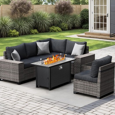 SUGOLD 7-Piece Patio Furniture Set with 30in 55,000 BTU Fire Pit, PE Wicker Outdoor Conversation Set